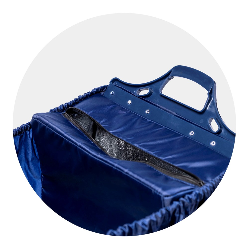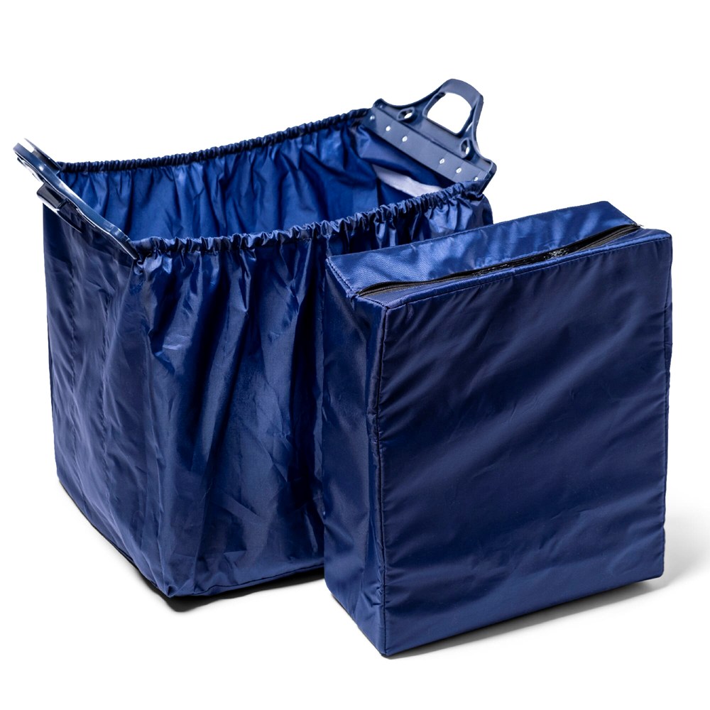 Je kunt deze praktische boodschappentas klein opvouwen, maar hij is verrassend groot als je hem in je winkelwagen hangt. Je klikt de tas eenvoudig vast aan de zijkanten van de meeste winkelwagentjes. Afrekenen en klaar is kees, je tilt de tas gemakkelijk van het karretje en ... in je auto bijvoorbeeld. Deze versie is uitgerust met een extra, uitneembaar koelvak voor onder andere diepvries- en zuivelproducten. Het vak wordt aan de binnenkant bevestigd met klittenband.