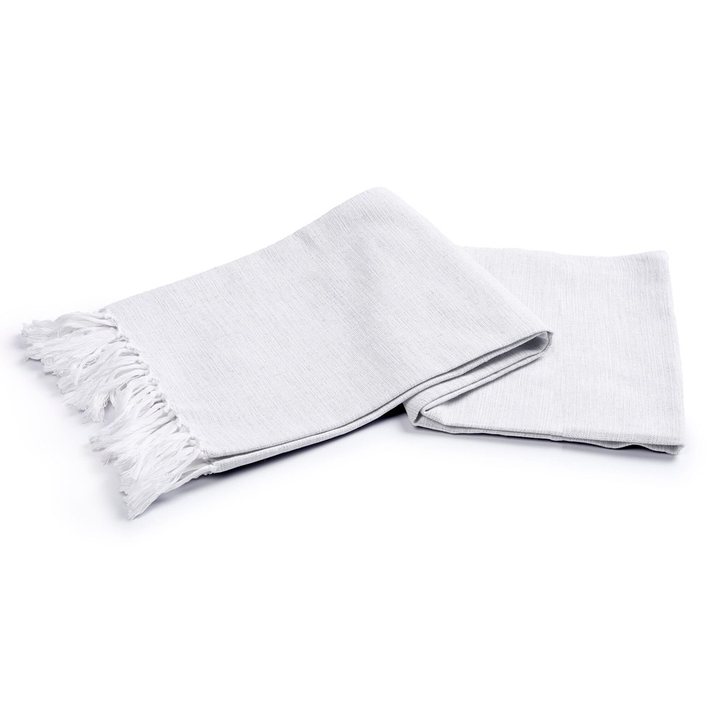 Een prachtige hammamdoek met franjes, gemaakt van 70% gerecycled katoen. De gekleurde draden zijn gemengd met wit om een gevlekte indruk te geven.