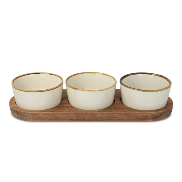 InSideOut Houten standaard met 3 keramische ronde kommen