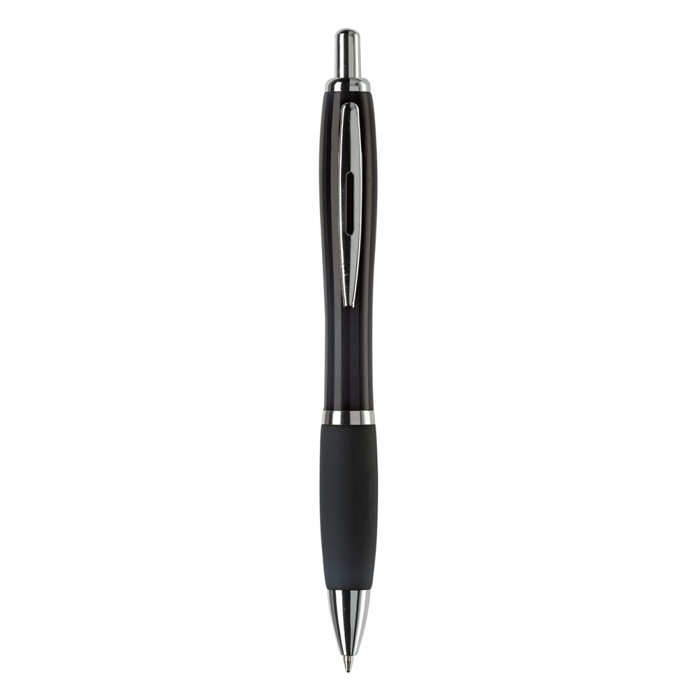 Hardcolour balpen met metalen clip, metal look drukknop, tussenring en penpunt. De pen bevat een blauwschrijvende Jumbo vulling. Vanaf 10.000 stuks andere kleurcombinaties mogelijk.