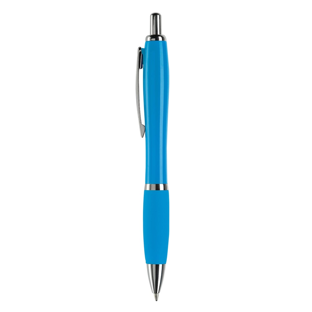 Hardcolour balpen met metalen clip, metal look drukknop, tussenring en penpunt. De pen bevat een blauwschrijvende Jumbo vulling. Vanaf 10.000 stuks andere kleurcombinaties mogelijk.