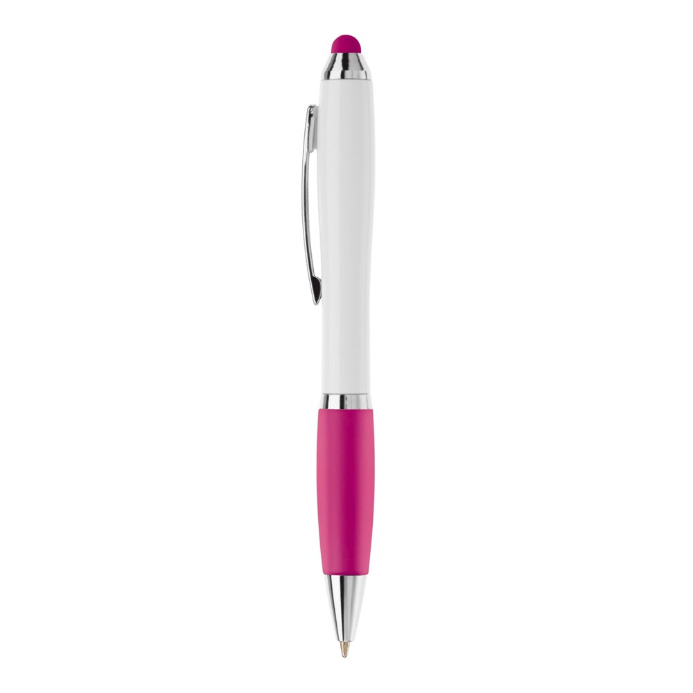 Balpen met touchscreen punt en frosty grip, draaimechanisme en metalen punt, metal look ring en clip. Blauwschrijvende X20 vulling.