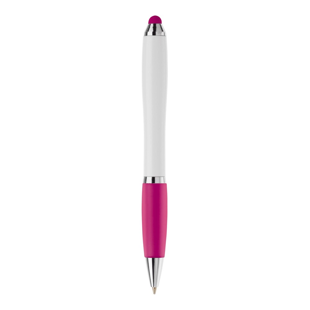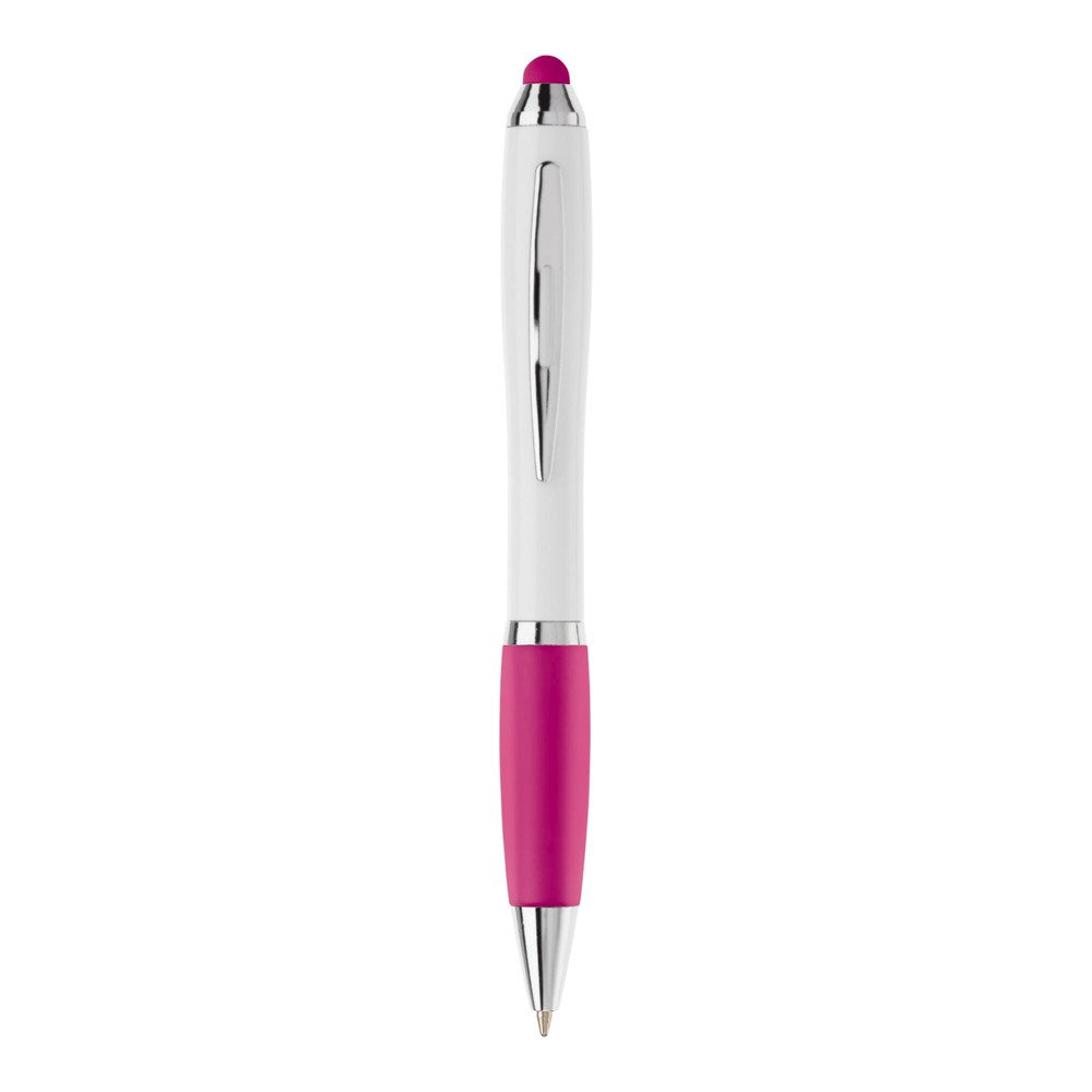 Balpen met touchscreen punt en frosty grip, draaimechanisme en metalen punt, metal look ring en...meer