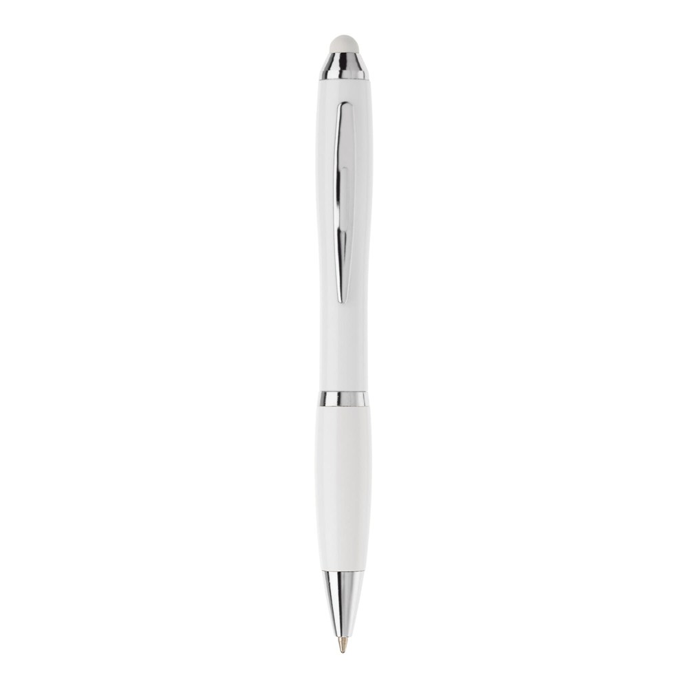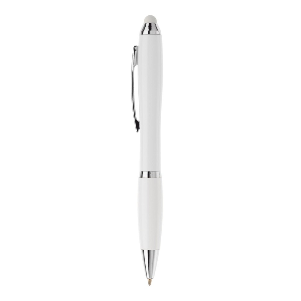 Balpen met touchscreen punt en frosty grip, draaimechanisme en metalen punt, metal look ring en clip. Blauwschrijvende X20 vulling.