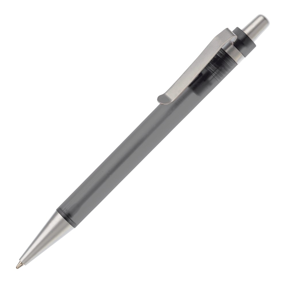 Transparante plastic balpen met metalen clip. Ook te verkrijgen in hardcolour. Blauwschrijvend met X20 vulling.
