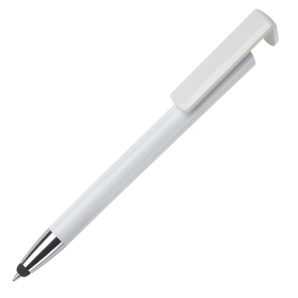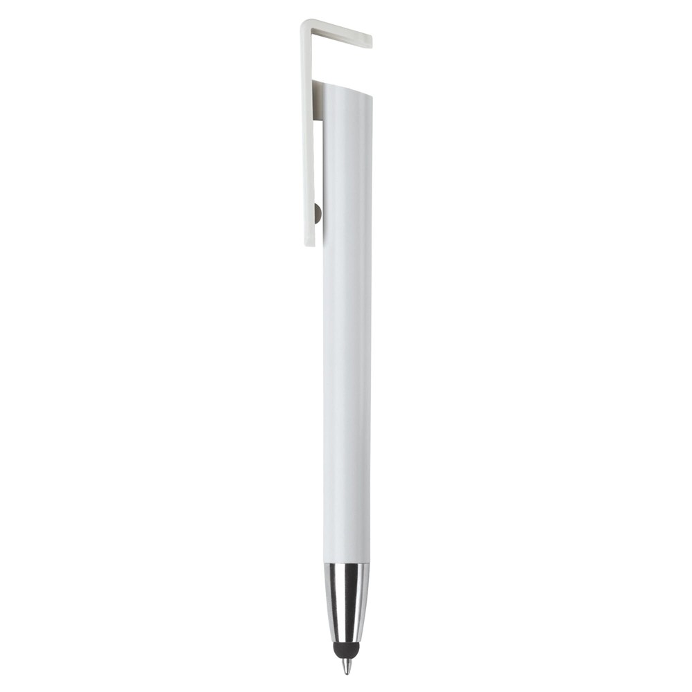 Moderne 3-in-1 balpen met stylus en telefoonstandaard. Een zeer hippe weggever in een strak design. Blauwschrijvende vulling.