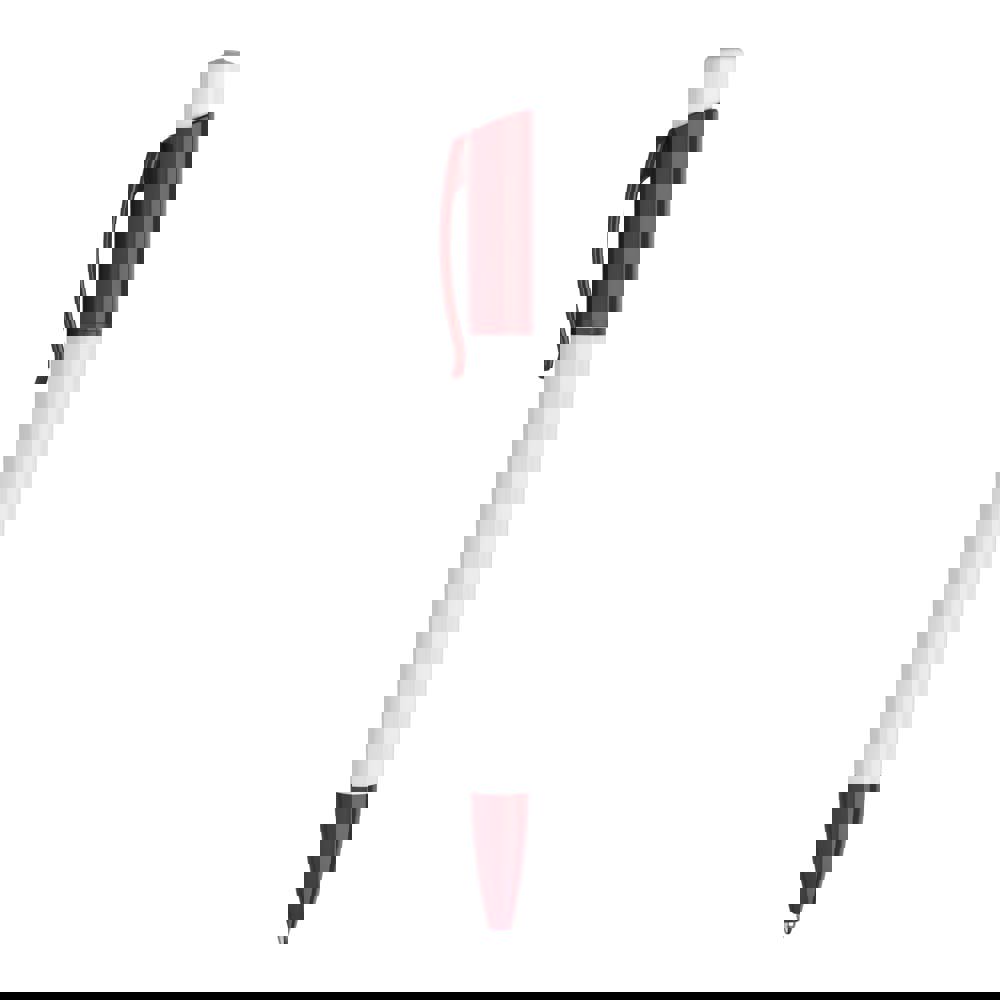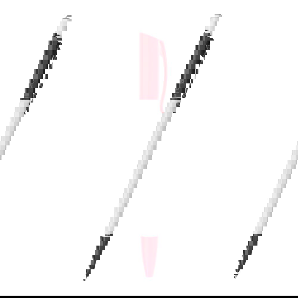 De Kamal balpen in hardcolour heeft een groot drukoppervlak op zowel de clip als de barrel. Met combinatie van een witte barrel en drukker en een gekleurde clip. Inclusief een drukmechaniek en een blauw schrijvende X20 vulling. De pen is gemaakt van ABS kunststof, geproduceerd in Europa.