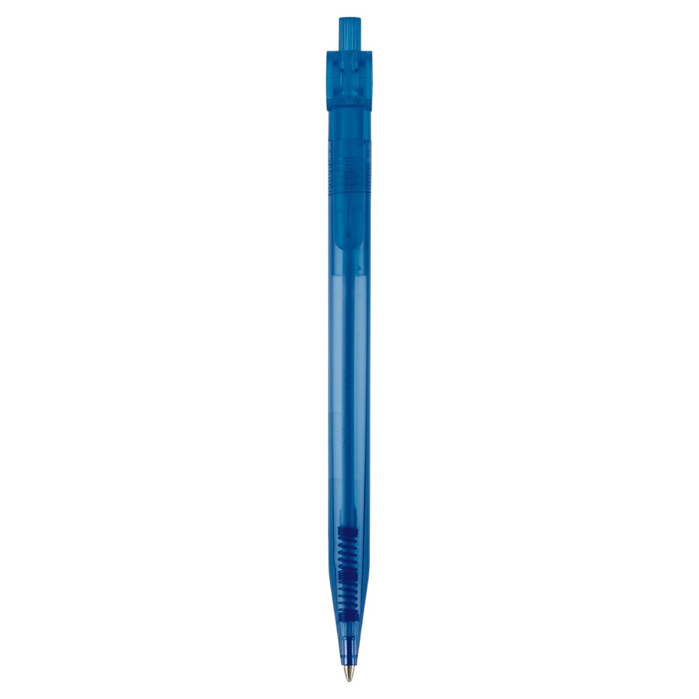 Transparante Toppoint design balpen, geproduceerd in Duitsland. Deze pen bevat een blauwschrijvende X20 vulling voor 2,5km schrijfplezier.