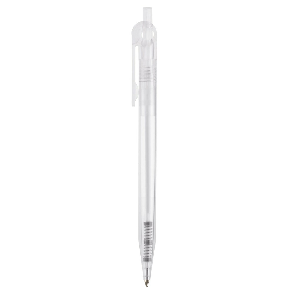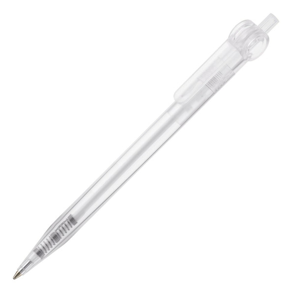 Transparante Toppoint design balpen, geproduceerd in Duitsland. Deze pen bevat een blauwschrijvende X20 vulling voor 2,5km schrijfplezier.
