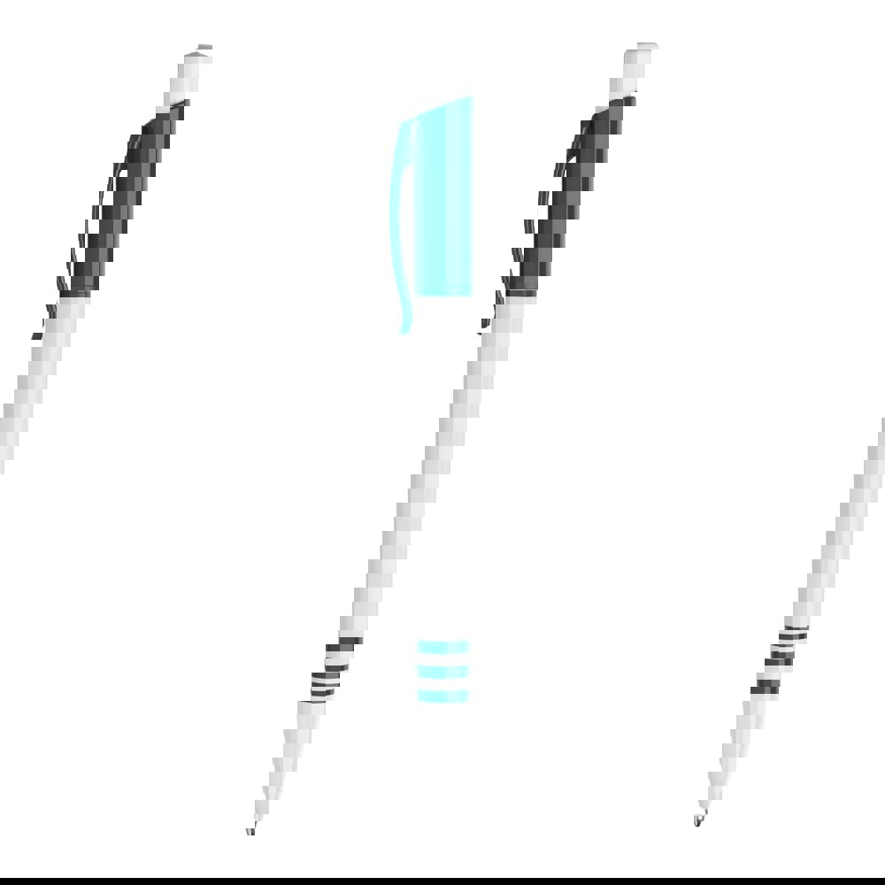 De Tropic balpen in hardcolour heeft een groot drukoppervlak op zowel de clip als de barrel. Met combinatie van een witte barrel en drukker en een gekleurde clip. De barrel bevat drie gekleurde ringen in dezelfde kleur als de clip. Inclusief een drukmechaniek en een blauw schrijvende Jumbo vulling. De pen is gemaakt van ABS kunststof, geproduceerd in Europa. Kleur combinaties voor deze pen zijn mogelijk vanaf 5.000 stuks.