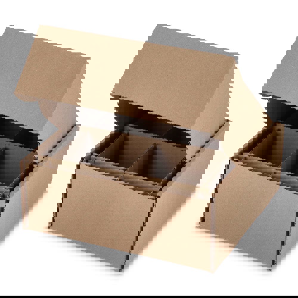 Kartonnen geschenkverpakking voor 4 mokken. Inclusief raster. All-over digitaal-eco-printing mogelijk. FSC gecertificeerd en gemaakt in Europa.