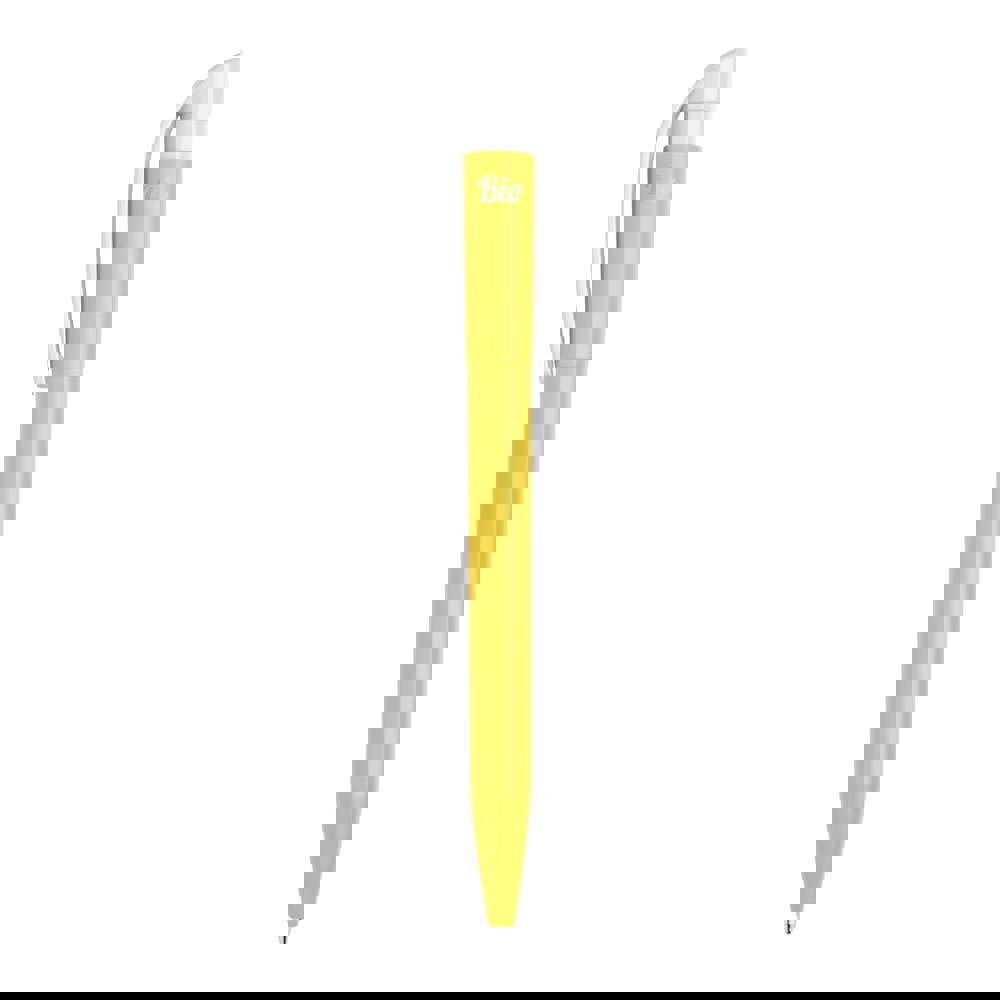 Waar bio-composteerbaarheid met design in aanraking komt, worden uitzonderlijke modellen gemaakt. Deze duurzame balpen S45 Bio is gemaakt van 75% PLA kunststof. Dit betekend dat de pen biologisch afbreekbaar is. Inclusief een gekleurde barrel en een witte drukker. De pen komt met een drukmechaniek en een X20 vulling met blauw schrijvende inkt. Geproduceerd in Europa.