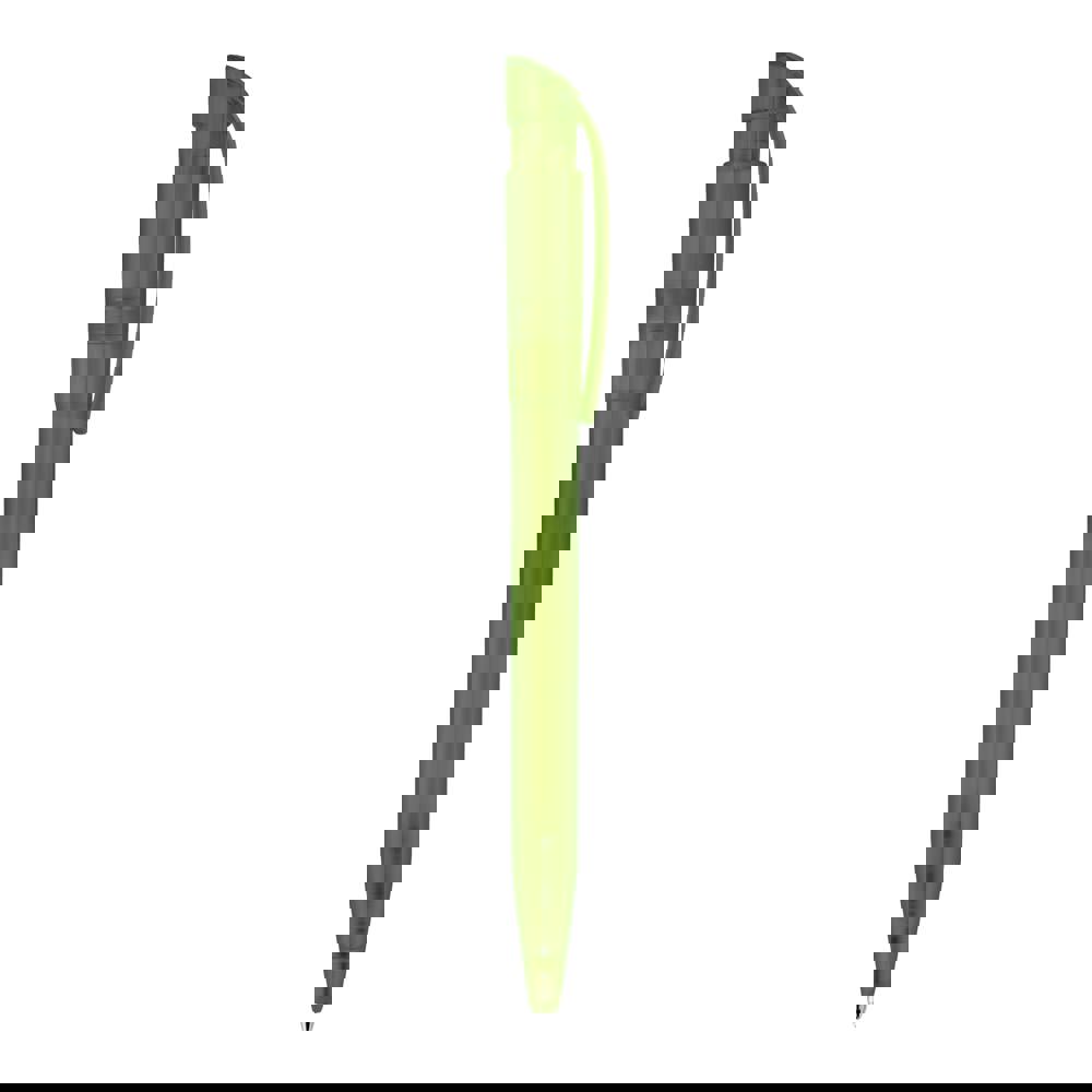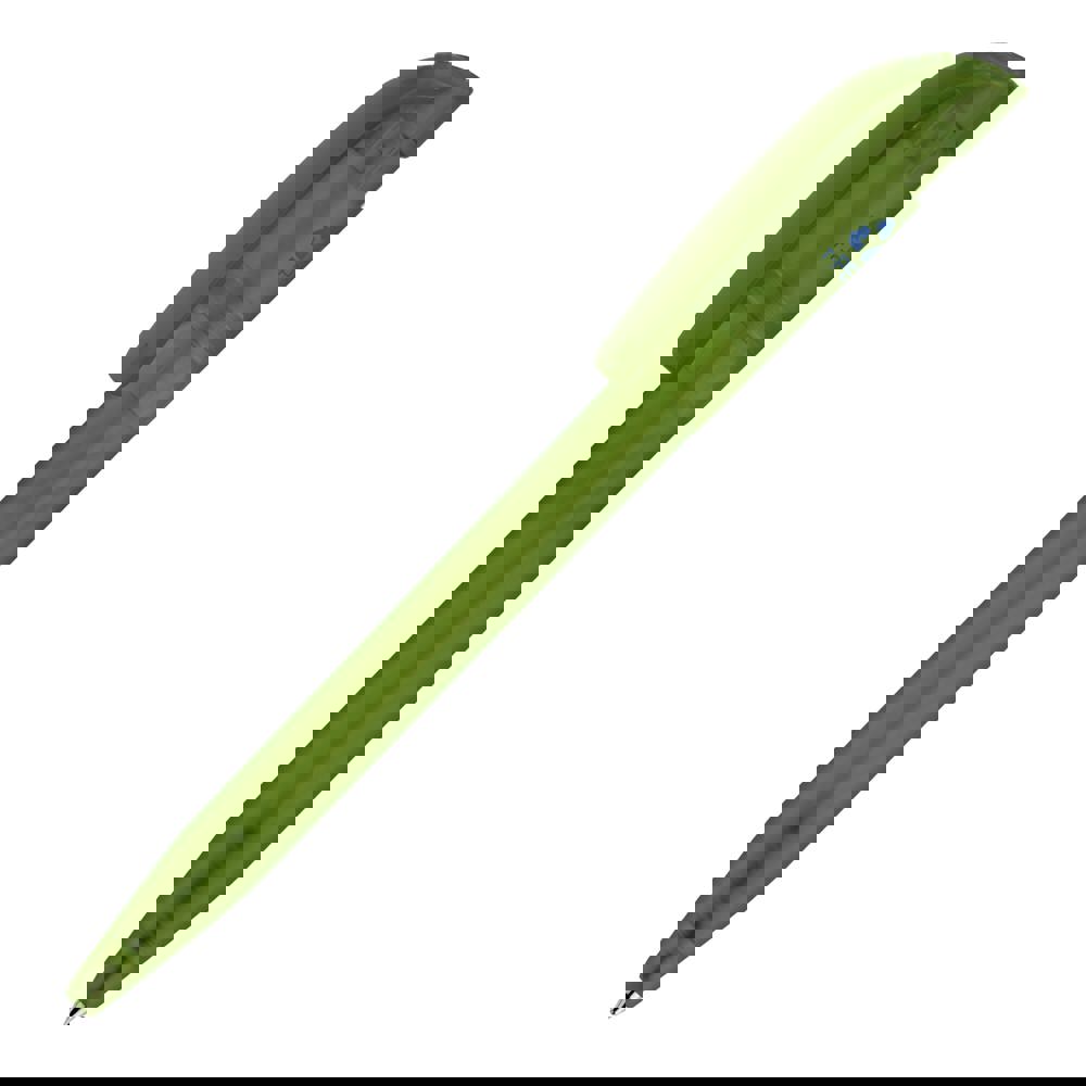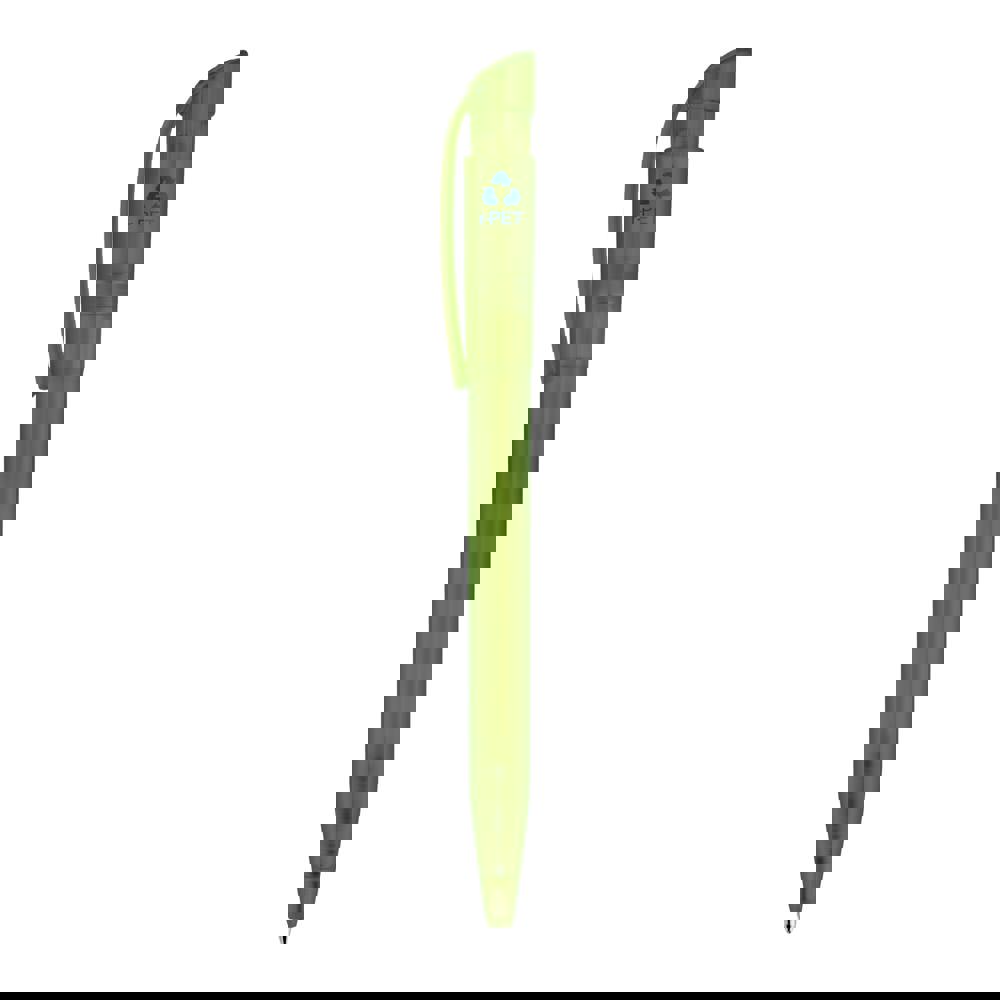 Moderne transparante balpen met boogclip, gemaakt van R-PET materiaal. R-PET betekend gerecycled PET kunststof. Door het grote drukoppervlak is het een uitstekend promotie artikel. Het bevat een drukmechaniek en een X20 vulling met blauw schrijvende inkt.