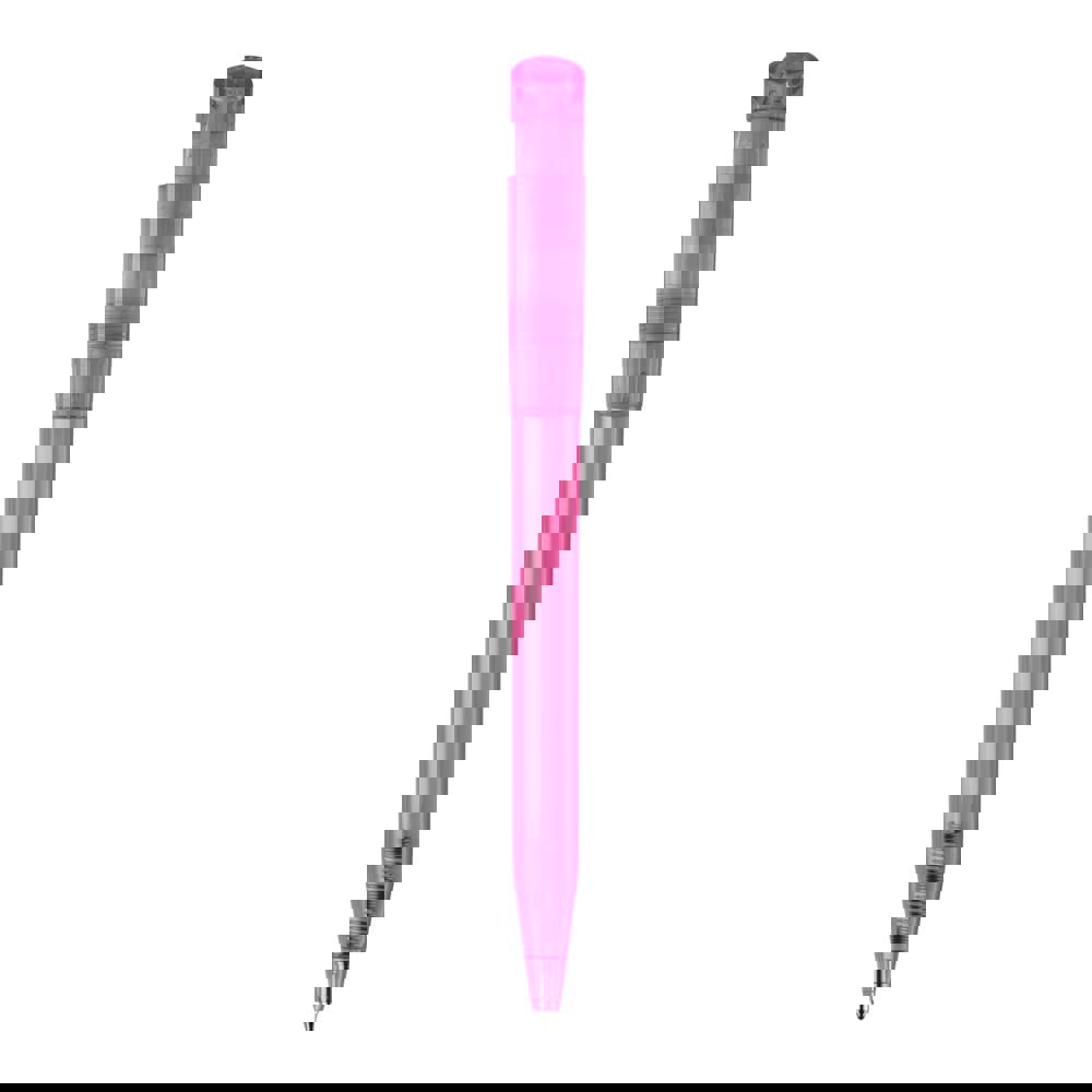 Moderne transparante S45 Clear balpen met gebogen clip. Door het grote drukoppervlak is het een uitermate geschikt promotieartikel. Het bevat een drukmechaniek en een blauw schrijvende X20 vulling. De pen is gemaakt van ABS kunststof, geproduceerd in Europa. Kleur combinaties voor deze pen zijn mogelijk vanaf 5.000 stuks.