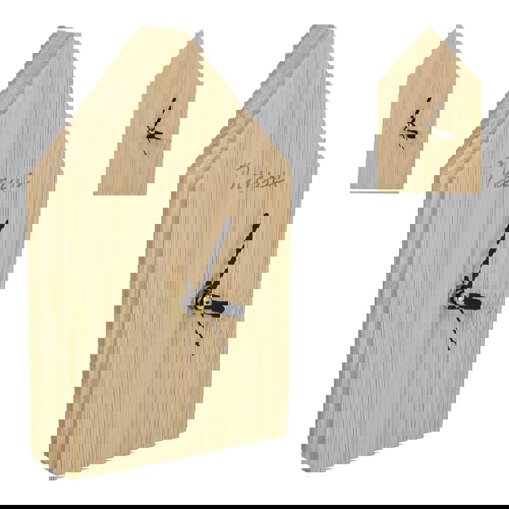 De homestead bureauklok brengt gezellige charme naar je werkplek met zijn huisvormige ontwerp en bamboe afwerking. Dit functionele en decoratieve stuk voegt warmte en persoonlijkheid toe aan elk huis of kantoor en is voorzien van wijzers voor uren, minuten en seconden om de tijd perfect bij te houden. Wordt inclusief batterijen geleverd. Per stuk in geschenkverpakking.