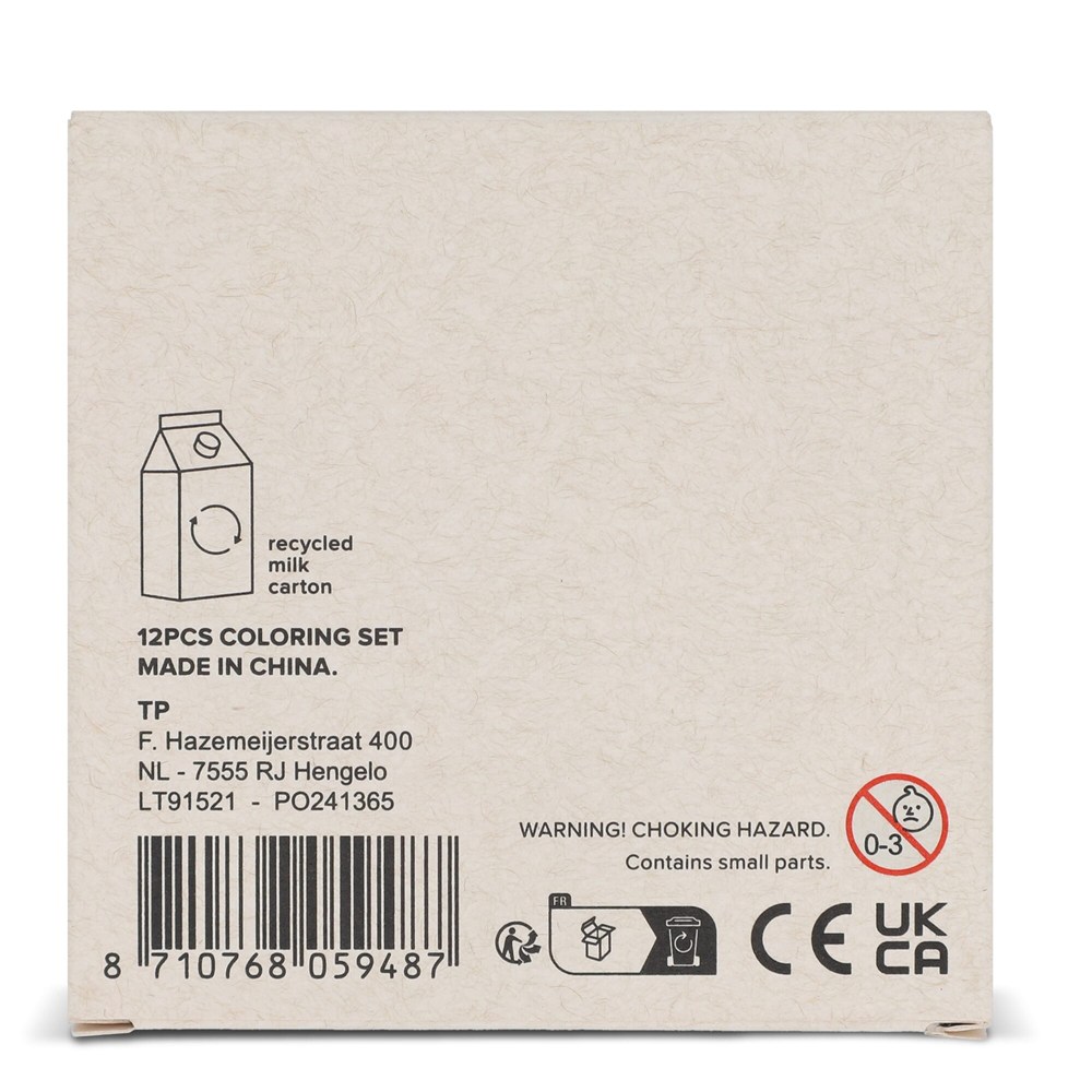 12 kleurpotloden in gerecyclede melkpakkenverpakking