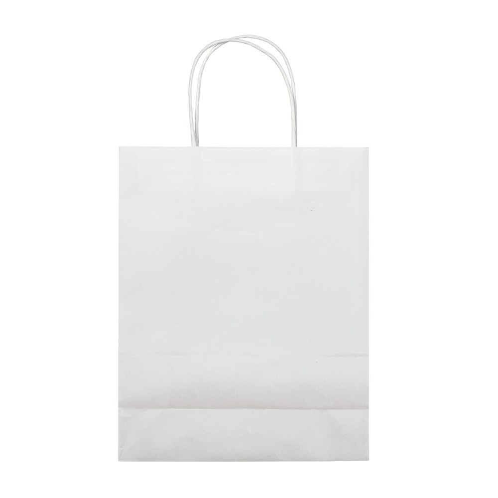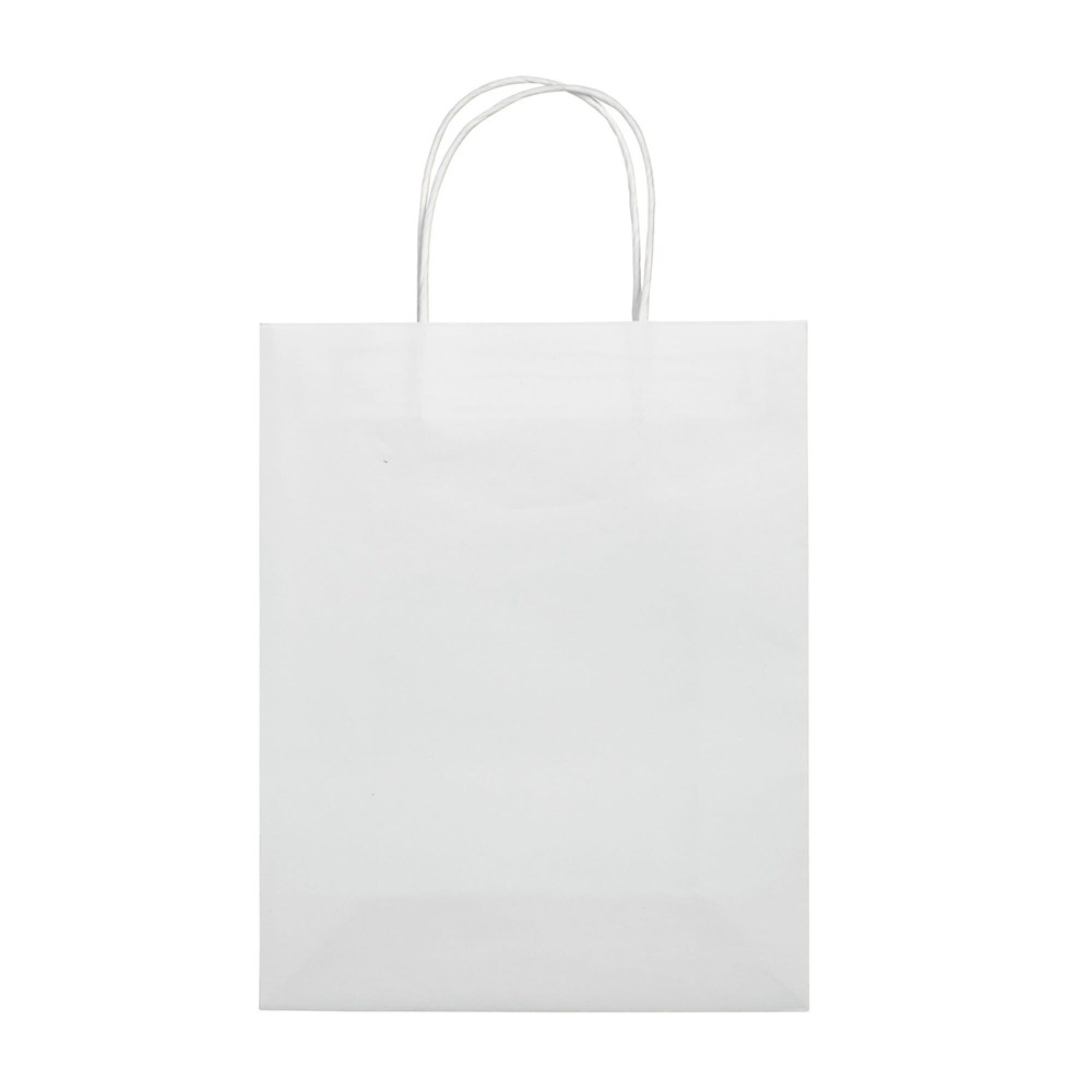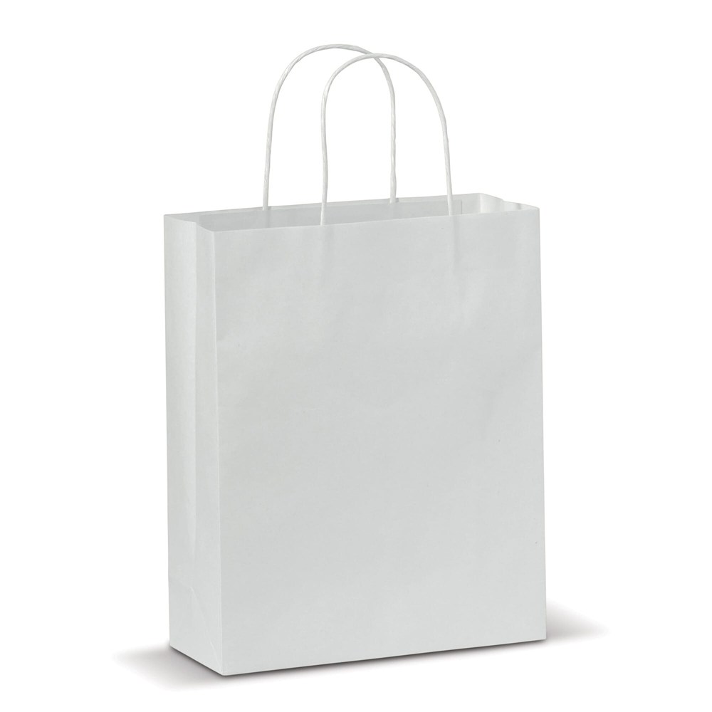Middelgrote mat papieren draagtas met hengsels van gedraaid papier. Tas heeft een ecologische look. Geschikt als geschenk- en cadeautas. FSC-gecertificeerd.