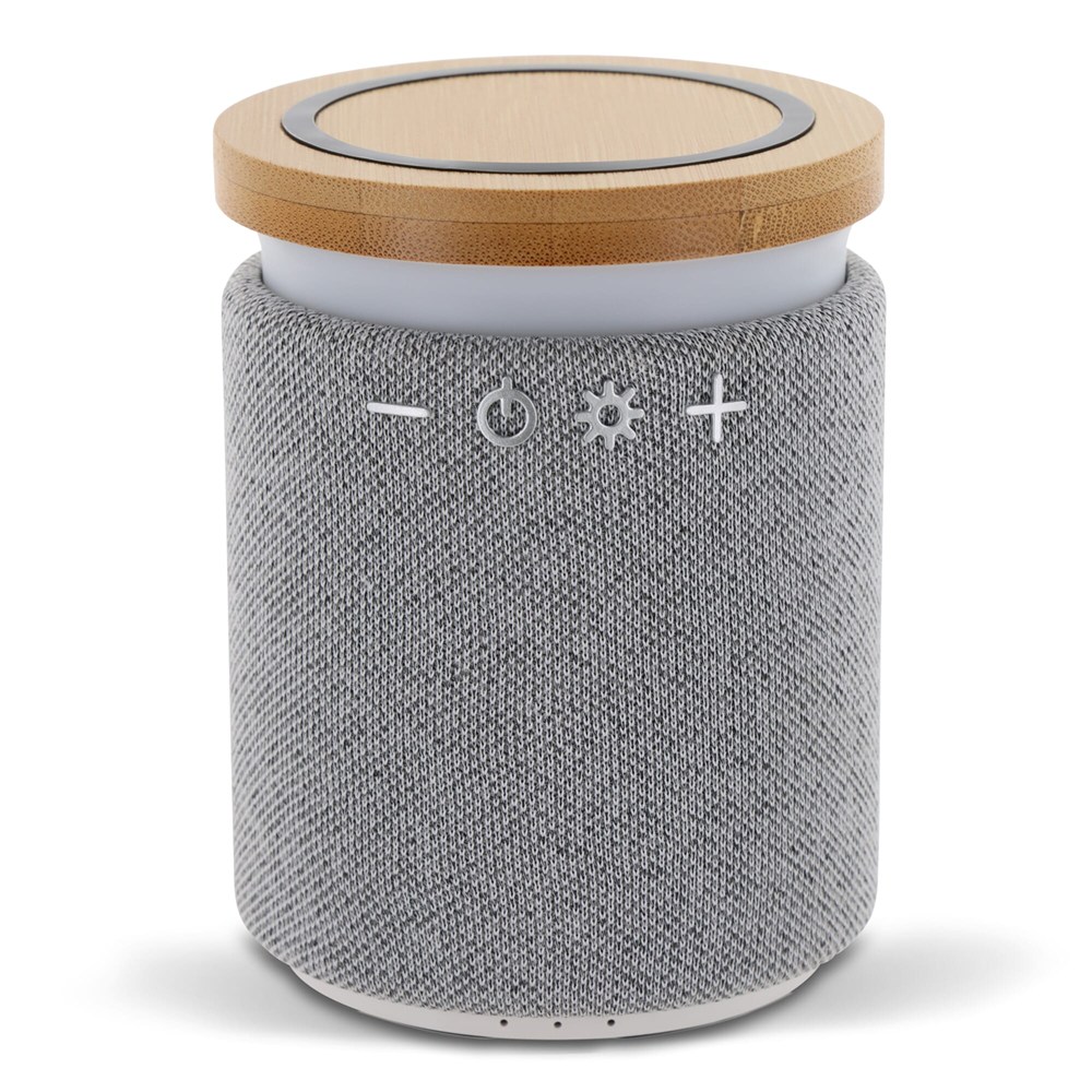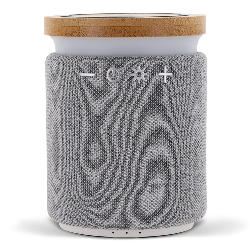 Draadloze Bluetooth speaker gemaakt van bamboe. De unieke 2-in-1 speaker dient ook als draadloos oplaadstation. De speaker wordt geleverd met een oplaadkabel en is verpakt in een geschenkverpakking.