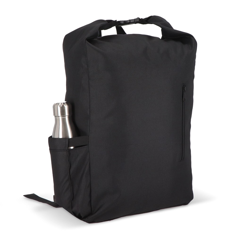 Deze handige rugzak is gemaakt van gerecycled PET. Hij heeft verstelbare, gewatteerde schouderbanden, een handvat aan de bovenkant en een voorvak met ritssluiting, ideaal voor kleinere accessoires. Het zijvak is ideaal voor een waterfles of paraplu.