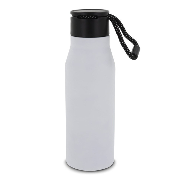 Dubbelwandige thermofles met een touw om de fles eenvoudig te dragen. De buitenkant heeft een...meer