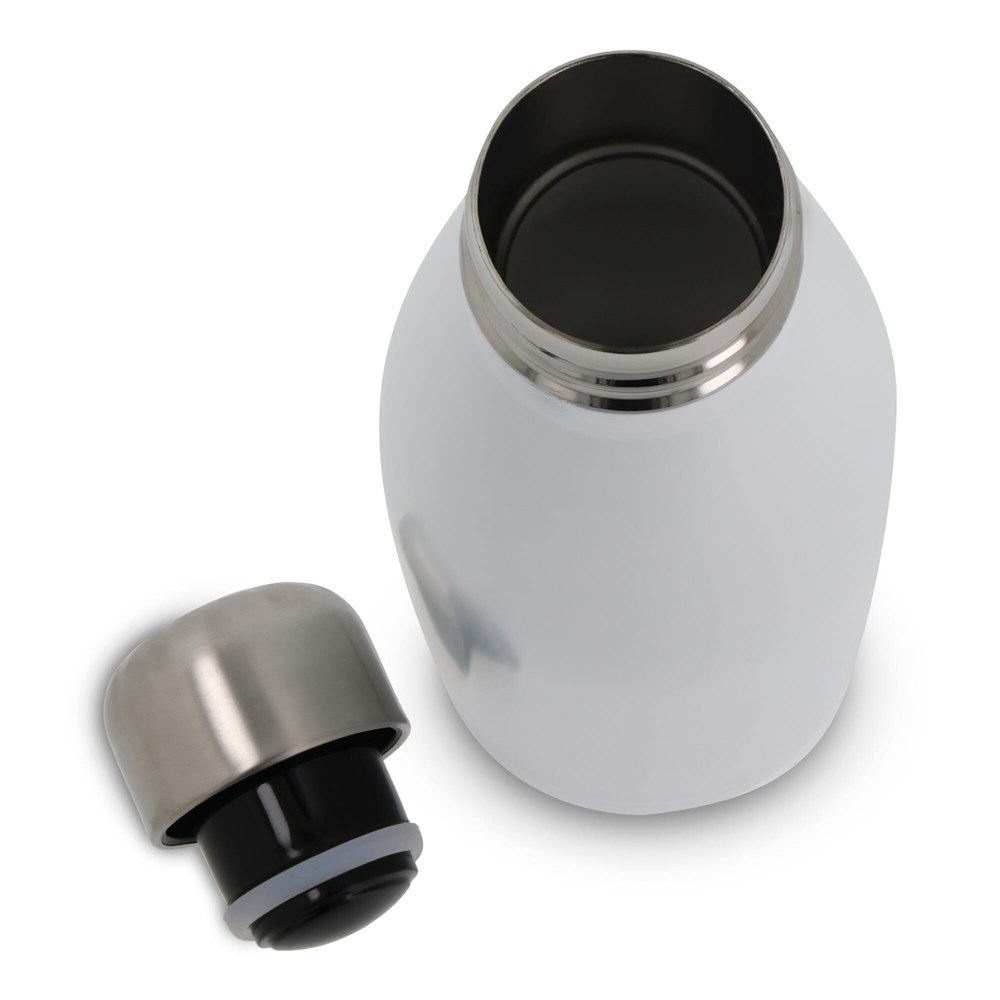 Dubbelwandig vacuüm geïsoleerde thermofles. De 100% lekvrije fles wordt geleverd in een mooie geschenkverpakking. Door het vacuüm tussen de wanden blijven dranken langer op temperatuur. Dranken blijven tenminste 12 uur warm of 24 uur koud.