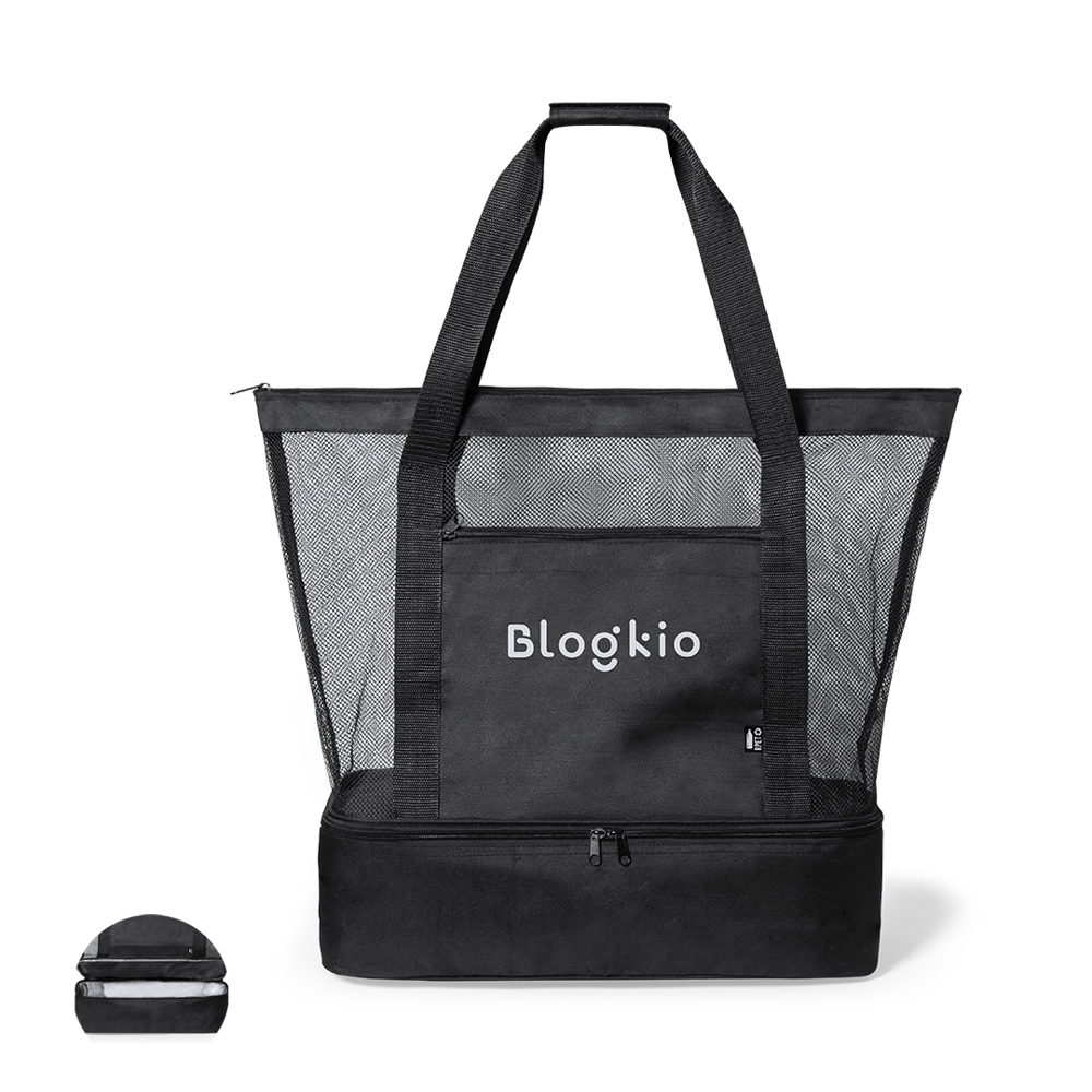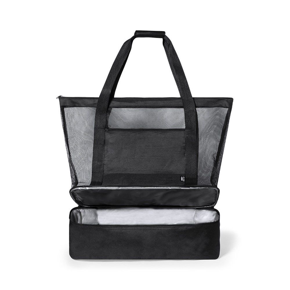 Koeltas van duurzaam 600D RPET polyester, gemaakt van gerecycled plastic, om het hergebruik van plastic afval aan te moedigen en bij te dragen aan de duurzaamheid van de planeet. Hoofdcompartiment in mesh, met ritssluiting. Bodem met geïntegreerde koelbox, vervaardigd uit duurzaam 600D RPET polyester, met PEVA isotherm binnenin. Versterkte handgrepen en groot voorvak, met RPET embleem op buitenlabel.