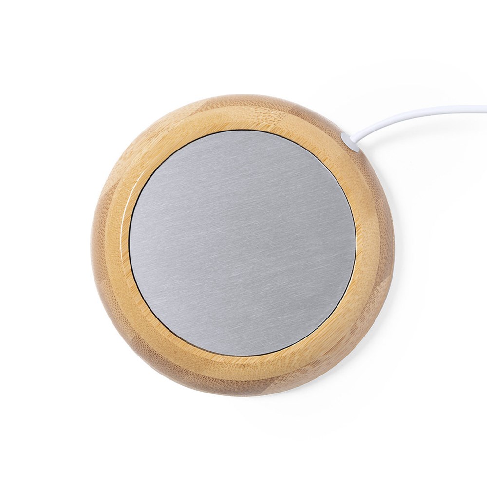 Natuurlijn mokwarmer, gemaakt van bamboe. Met USB-aansluiting en metalen oppervlak speciaal ontworpen om de warmte vast te houden. Met anti-slip, suède basis en gepresenteerd in een individuele eco-design doos. Gebruiksaanwijzing beschikbaar in het Engels en Spaans.