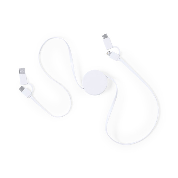 Ultracompact ontwerp, uitschuifbare lader. Aansluitingen Type C (in- en uitgang) en dubbele Micro USB/ Lightning. Oplaad- en gegevensoverdrachtfunctie. Breed merkoppervlak en gepresenteerd in een individuele tas.