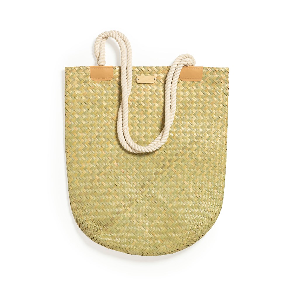 Rechthoekige rieten tas met een casual design, een must-have. Grote inhoud en met originele lange handvaten in katoen, verstevigd in PU. Met oppervlak voor branding in hout, speciaal ontworpen voor lasergravure.