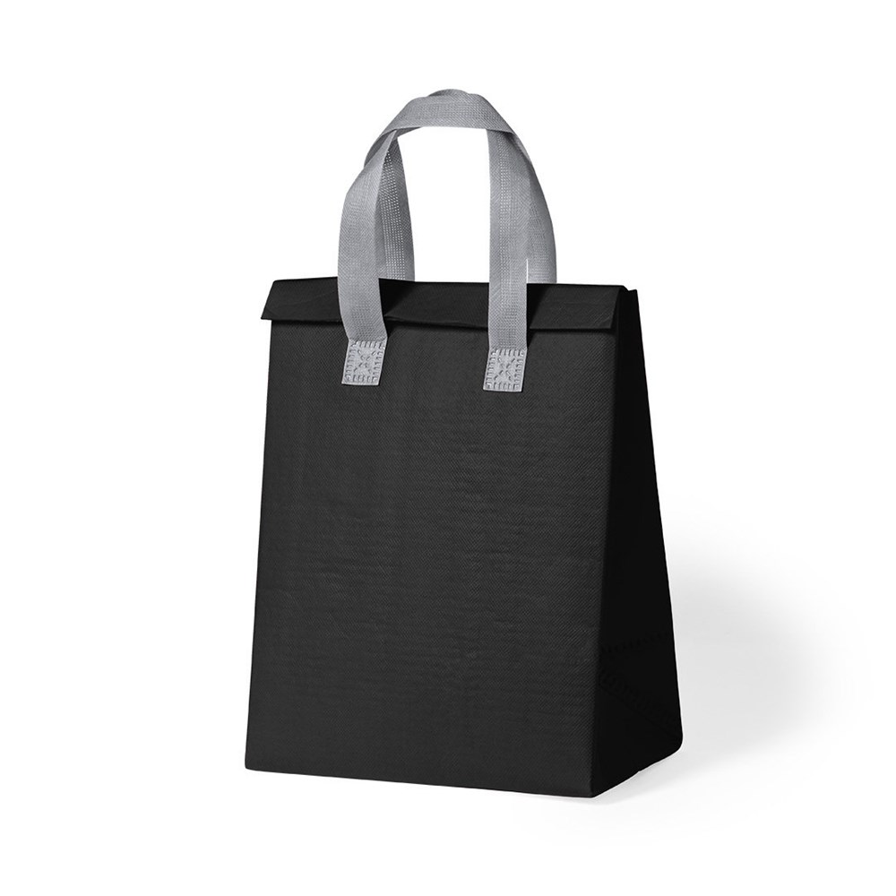 Koeltas in non-woven met laminering. Hoofdvak met klittenbandsluiting en isothermische aluminium binnenkant. Heat-sealed afwerking, met kruisje en versterkte handgrepen. Beschikbaar in een brede waaier van kleuren.