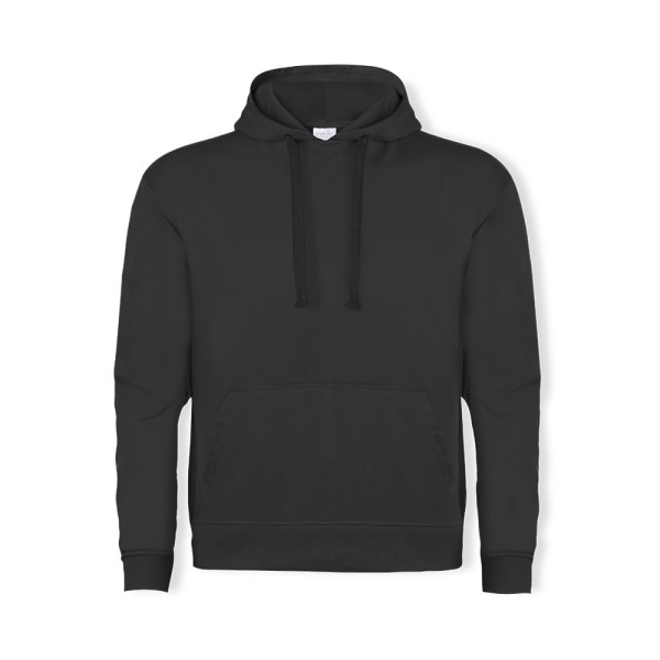 Volwassen unisex sweatshirt met capuchon. Gemaakt in een combinatie van geborsteld organisch katoen RPET polyester 280gsm. Kangoeroezak en effen gebreide gevoerde capuchon met bijpassende gekleurde touwtjes. Kraag, manchetten en tailleband in 2x1 ribbreisel, met gestikte schouders en ecolabel. Verkrijgbaar in een breed scala aan kleuren en in de maten XS, S, M, L, XL, XXL, 3XL.