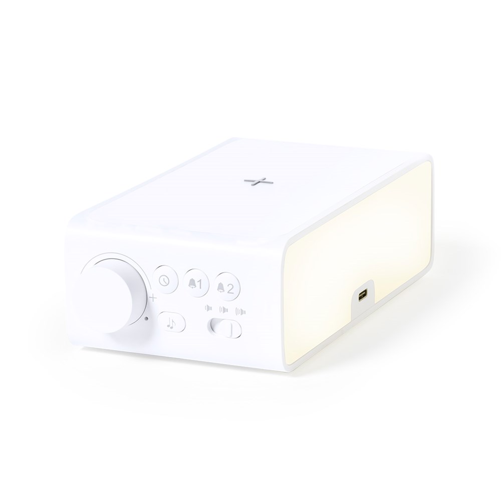 Multifunctioneel horloge in elegant wit design, met geïntegreerde 10W draadloze oplader en LED...meer