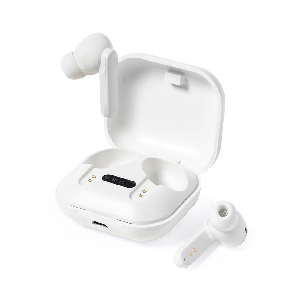 Natuurlijn oortelefoon met Bluetooth® 5.0-verbinding, inclusief lithiumbatterij en in een elegante witte afwerking. Gemaakt van gerecycled ABS (RABS), met RCS-certificaat, dat de gerecyclede oorsprong garandeert. Ergonomisch ontworpen, inclusief een geïntegreerde bedieningsknop op de oortelefoon, met bijpassende oplaadbasis en LED-oplaadstatusindicator. Handsfree-functie en oplaadbaar, met micro USB-kabel inbegrepen. Gepresenteerd in een aantrekkelijke eco-design doos.