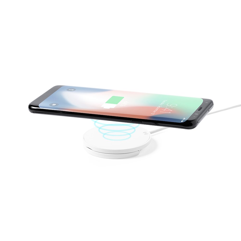 Magnetische draadloze oplader van 10 W met geïntegreerde houder. Behuizing van gerecycled ABS (RABS), met RCS-certificaat, dat de gerecyclede oorsprong garandeert. Inclusief 1 m USB-kabel en metalen accessoire met 3M lijm, extra sterk en vrij van resten wanneer losgekoppeld van het apparaat, waardoor het gebruik van de magnetische functie van de oplader in elk mobiel apparaat mogelijk is. Compatibel met apparaten die zijn uitgerust met draadloze oplaadtechnologie. Groot merkoppervlak en gepresenteerd in een aantrekkelijke eco-design doos. Gebruiksaanwijzing beschikbaar in het Engels en Spaans.