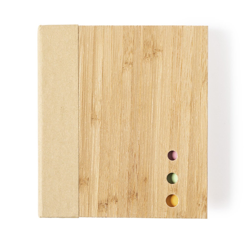 Natuurlijn notitieblokhouder met stevige bamboe omslagen. Met 115 kraft sticky notes, 115 medium sticky notes en 420 mini sticky notes.