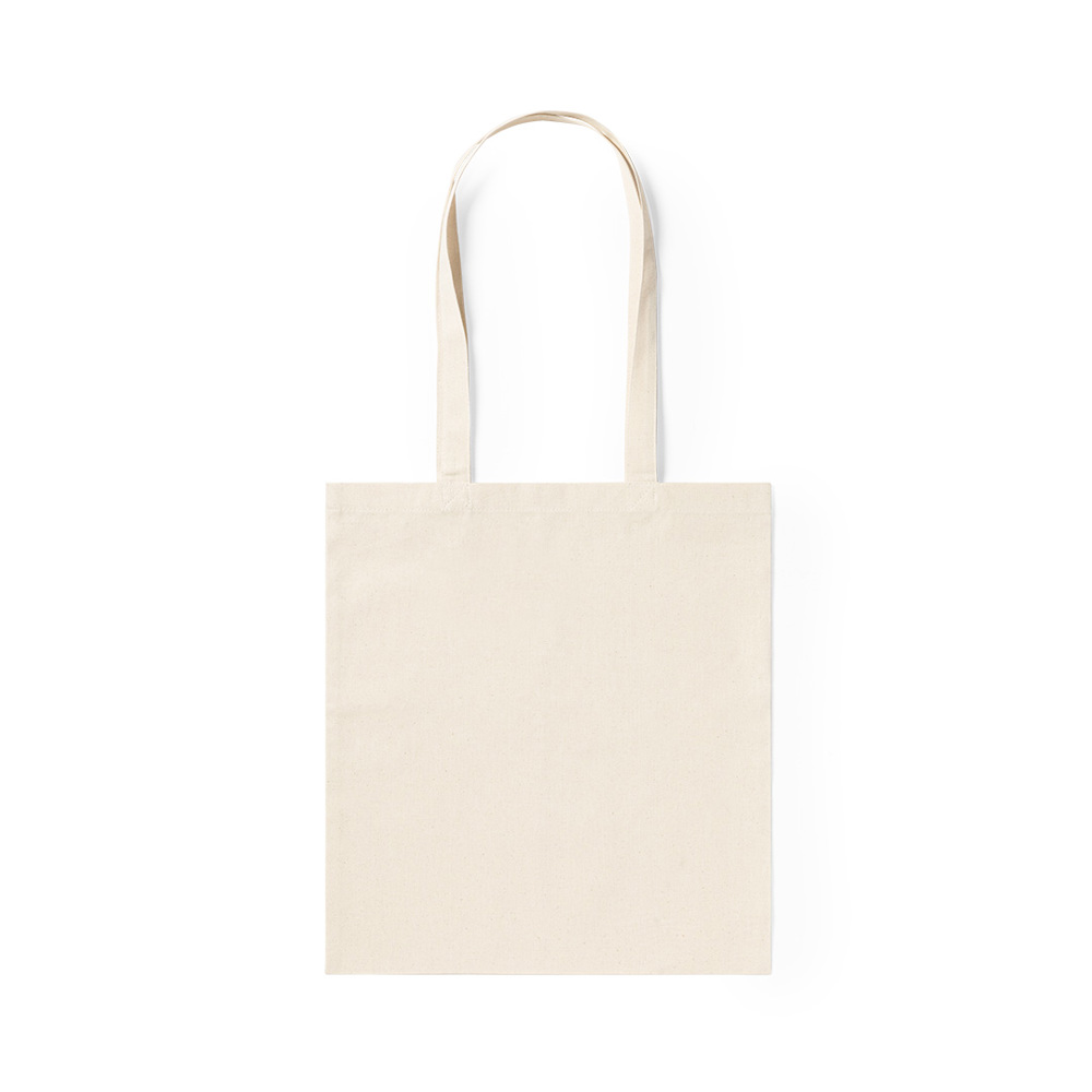 Tas van bestendig katoenen materiaal 240g/m2, in naturelkleurige afwerking. Met 70 cm lengte, versterkte handgrepen en gestikte afwerking. Weerstand tot 9kg gewicht.