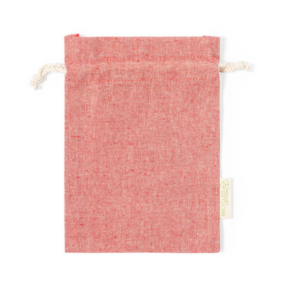 Milieuvriendelijke tas gemaakt van resistent gerecycled katoenmateriaal van 120g/m2. GRS-certificaat (Global Recycled Standard), dat de gerecyclede herkomst garandeert van het materiaal dat voor de vervaardiging van het product is gebruikt. Katoenen trekkoordsluiting en gestikte afwerking, inclusief etiket aan de buitenkant met logo van gerecycled katoen.