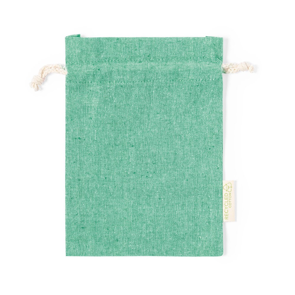 Milieuvriendelijke tas gemaakt van resistent gerecycled katoenmateriaal van 120g/m2. GRS-certificaat (Global Recycled Standard), dat de gerecyclede herkomst garandeert van het materiaal dat voor de vervaardiging van het product is gebruikt. Katoenen trekkoordsluiting en gestikte afwerking, inclusief etiket aan de buitenkant met logo van gerecycled katoen.
