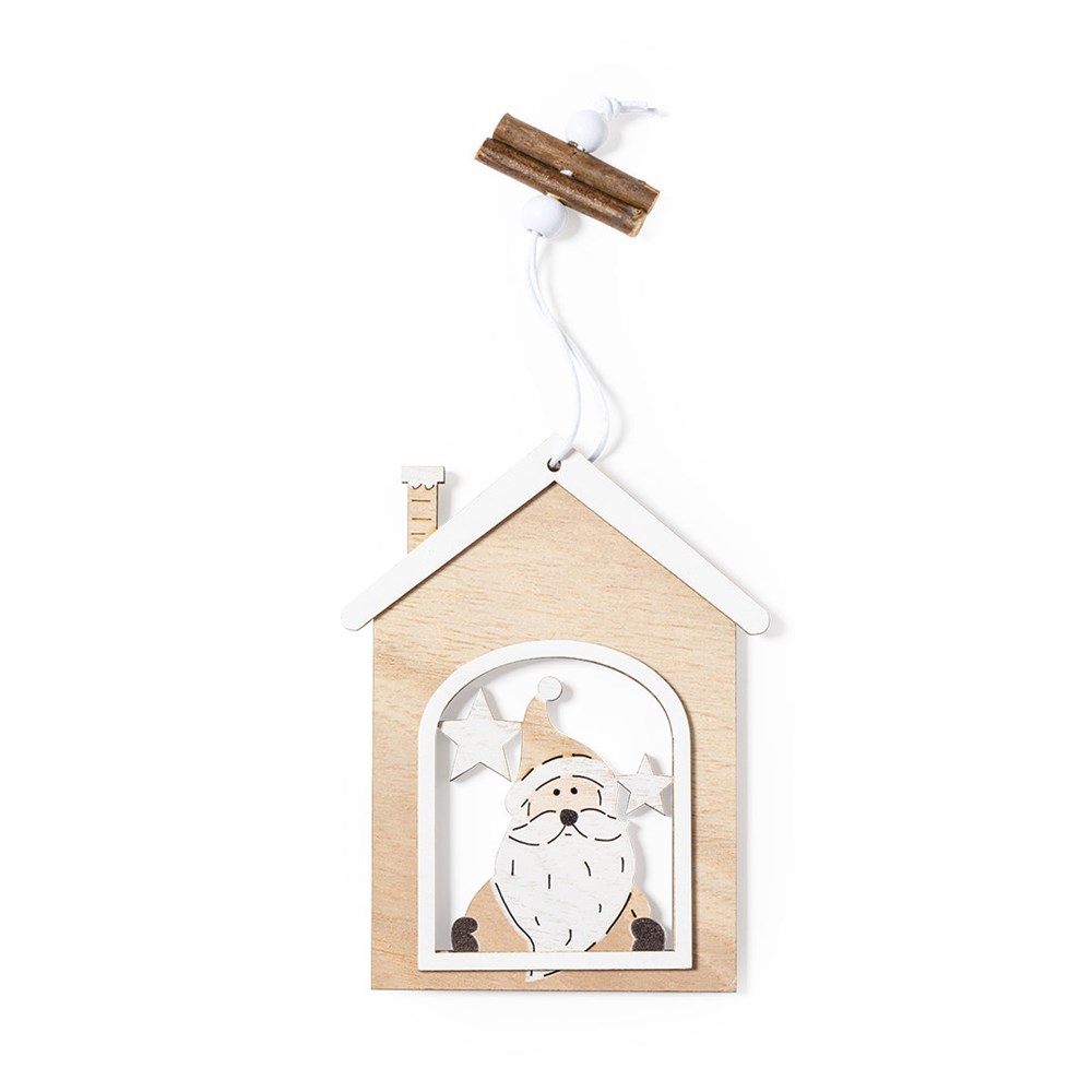 Elegante en moderne kerstdecoratie in natuurlijk hout. Inclusief ophangaccessoire en verkrijgbaar in twee uitvoeringen: Kerstman en Kerstmotieven.