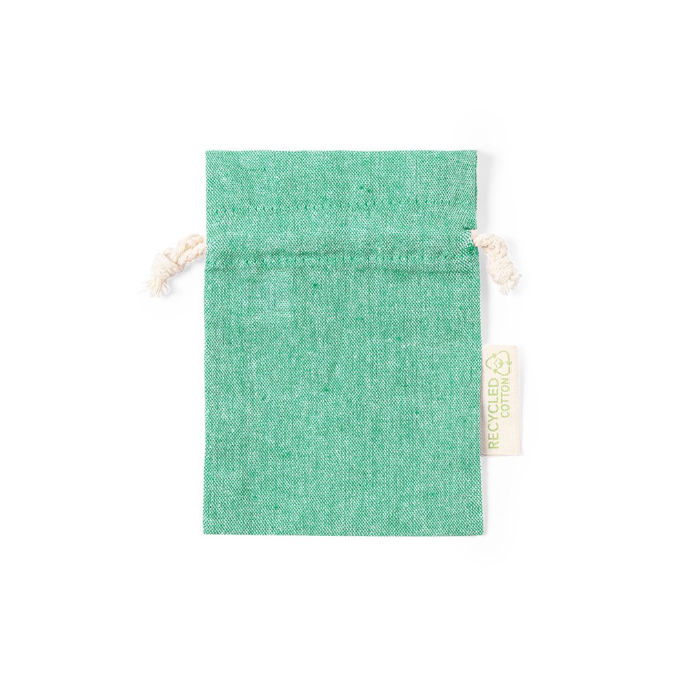 Zakje in natuurlijn en afmeting 10x14 cm. Met trekkoordsluiting en gemaakt van gerecycled katoen GRS 120g/m2. Gemakkelijk te merken en speciaal ontworpen voor kleine voorwerpen, met label van gerecycled katoen aan de buitenkant. GRS-certificaat (Global Recycled Standard) beschikbaar, dat de gerecyclede herkomst van het voor de vervaardiging van het product gebruikte materiaal garandeert. Beschikbaar in een brede waaier van kleuren.