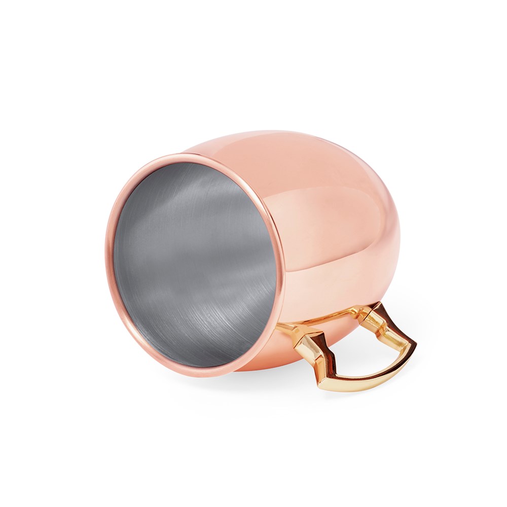 Drinkbeker met een inhoud van 500 ml in roestvrij staal met een buitenlaag van gegalvaniseerd koper. Innovatief handvatontwerp en gepresenteerd in een individuele doos.