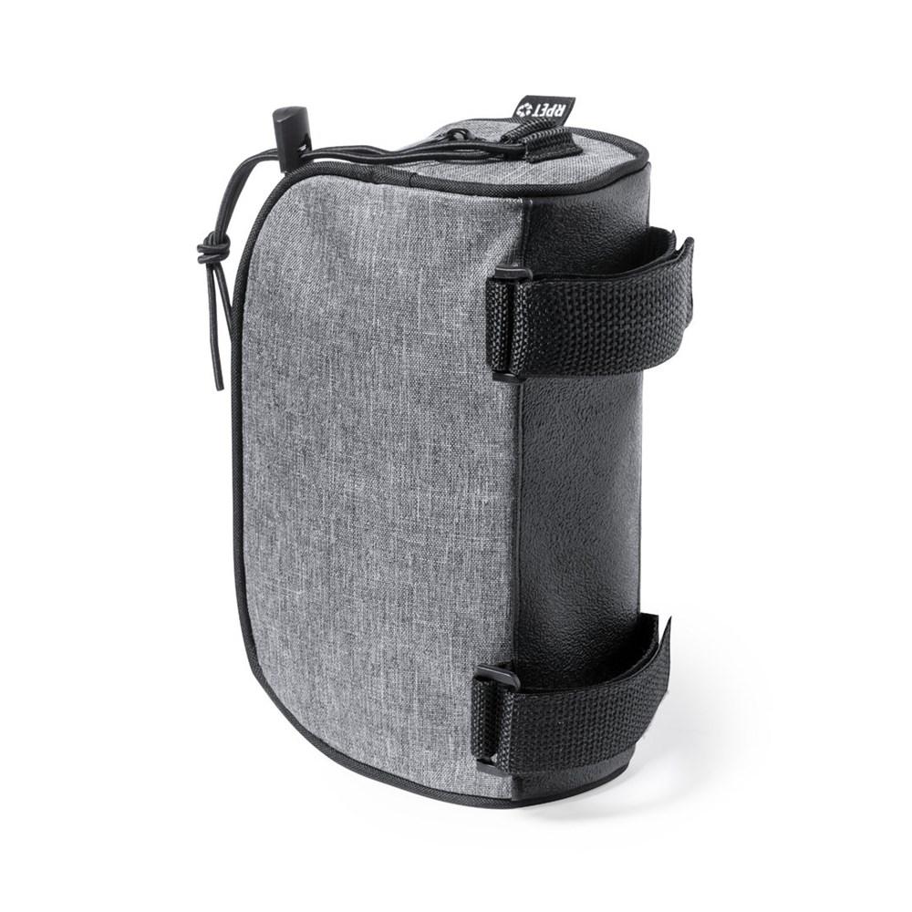 Scooterstuurtas gemaakt van duurzaam 600D RPET. Gemarmerde grijze afwerking met verstevigde biezen en hoofdvak met ritssluiting. Inclusief dubbele verstelbare riem op de stang met klittenbandsluiting en elastisch trekkoord met versteller. Buitenlabel met het RPET-kenmerk.RPET-materiaal is gemaakt van gerecycled plastic, om het hergebruik van plastic afval te stimuleren en de duurzaamheid van de planeet te helpen.