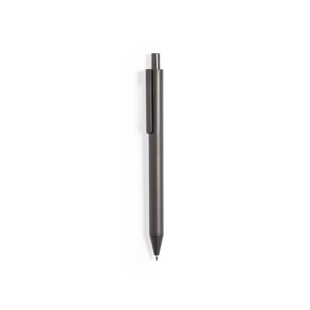 Natuurlijn pen, met een behuizing gemaakt van koffievezels en bijpassende details. Drukknopmechanisme en blauwe inkt, met een embleem van koffievezels op de behuizing. Koffievezel is een circulaire oplossing verkregen uit het gebruik van afvalstoffen die ontstaan bij de koffieproductie. Een duurzaam alternatief dat de vermindering van het gebruik van plastic bevordert, energie bespaart in het productieproces en bijdraagt aan milieubescherming.