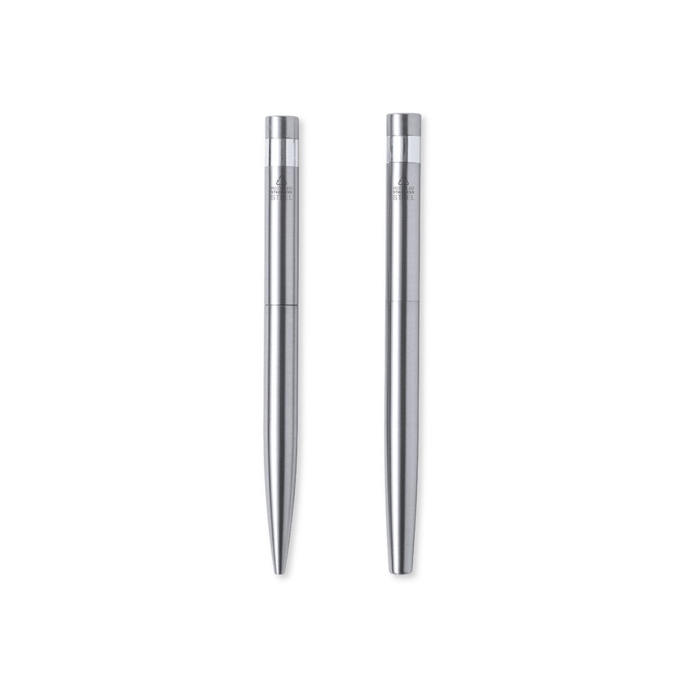 Milieuvriendelijke set van balpen en rollerpen, gemaakt van gerecycled roestvrij staal....meer
