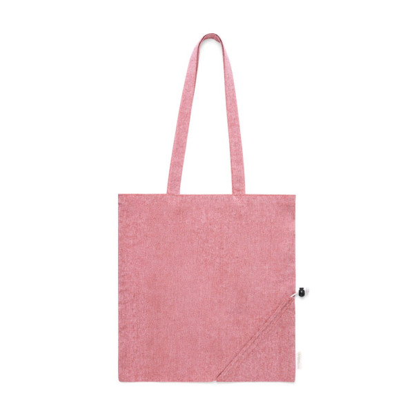 Natuur lijn vouwtas gemaakt van 120 g/m2 gerecycled katoen. Gestikte afwerking en lange versterkte hengsels (70 x 2,5cm). Klein vouwformaat door trekkoord met verstelaccessoire. Verkrijgbaar in een breed scala aan kleuren, met label aan de buitenkant. weerstand tot 6kg in gewicht. GRS-certificering (Global Recycled Standard) beschikbaar, die de gerecycleerde oorsprong garandeert van het materiaal dat is gebruikt om het product te vervaardigen."
