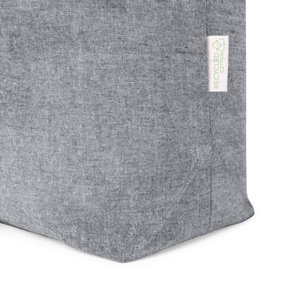 Tas uit de natuur lijn gemaakt van 140 g/m2 gerecucled katoen. Gestikte afwerking en met lange versterkte hengsels (70 x2,50 cm). Kruisje op de bodem en verkrijgbaar in de kleuren naturel en zwart, met label en gerecycled katoen aan de buitenkant. Weerstand tot 6 kg zwaar. GRS-certificering (Global Recycled Standard) beschikbaar, die de gerecycleerde oorsprong garandeert van het materiaal dat is gebruikt om het product te vervaardigen.