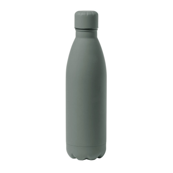 Fles met een inhoud van 790 ml, gemaakt van roestvrij staal met rubberen afwerking, speciaal ontworpen voor laserprinting. Met bijpassende schroefdop, BPA-vrij en verkrijgbaar in een groot aantal matte kleuren. Gepresenteerd in een individuele doos met kraft ontwerp.Handleiding beschikbaar in het Spaans en Engels.