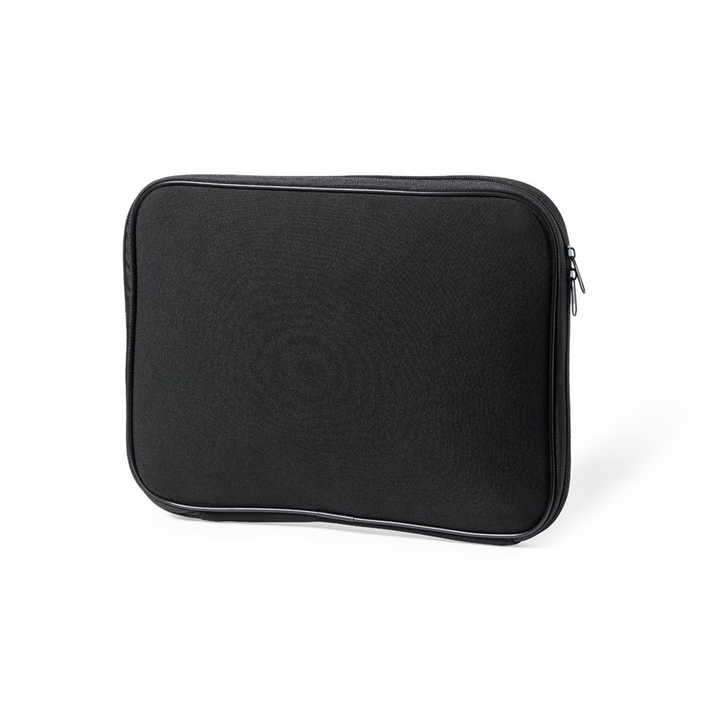 Laptophoes van duurzame softshell. In stijlvolle zwarte kleur, met vulling aan de binnenkant. Bijpassende ritssluiting met dubbele trekker. Voor laptops of tablets tot 15 inch.