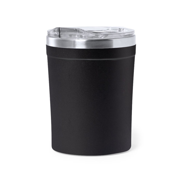 Tafelthermosfles van roestvrij staal met een inhoud van 350 ml. PP buitenkant, met dispenser en gemakkelijk te openen deksel. BPA-vrij. Gepresenteerd in individueel kraft ontwerp doosje.