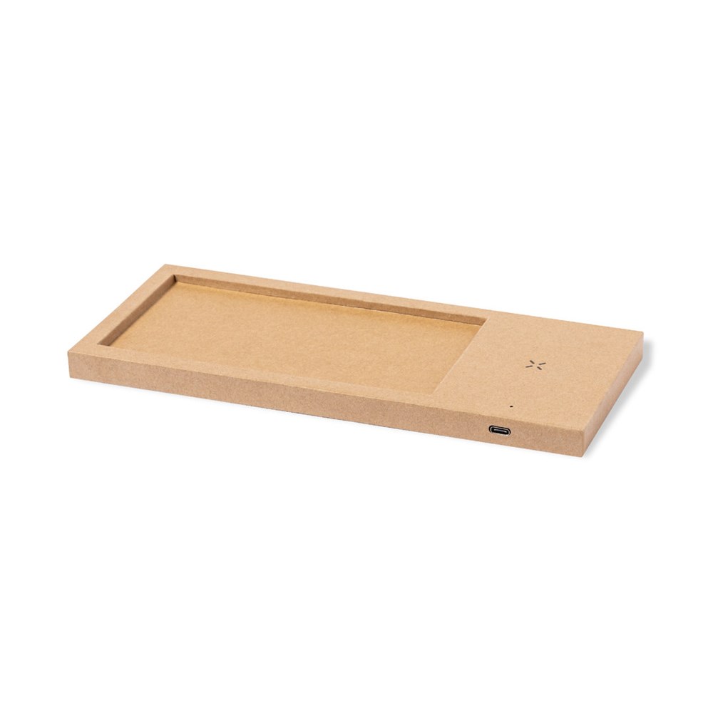 10W draadloze lader organizer, gemaakt van gerecycled karton met opbergruimte voor briefpapier. Compatibel met apparaten uitgerust met Qi draadloze oplaadtechnologie, met LED-laadstatusindicator en Type-C oplaadkabel inbegrepen. Gepresenteerd in een individuele kraft ontwerp doos, met handleiding in het Engels en Spaans. Vervaardigd volgens RoHS-normen en in overeenstemming met de volgende veiligheidseisen: Beveiligingssysteem tegen oververhitting.Beveiligingssysteem tegen overbelasting.Blokkadesysteem om kortsluiting te voorkomen."
